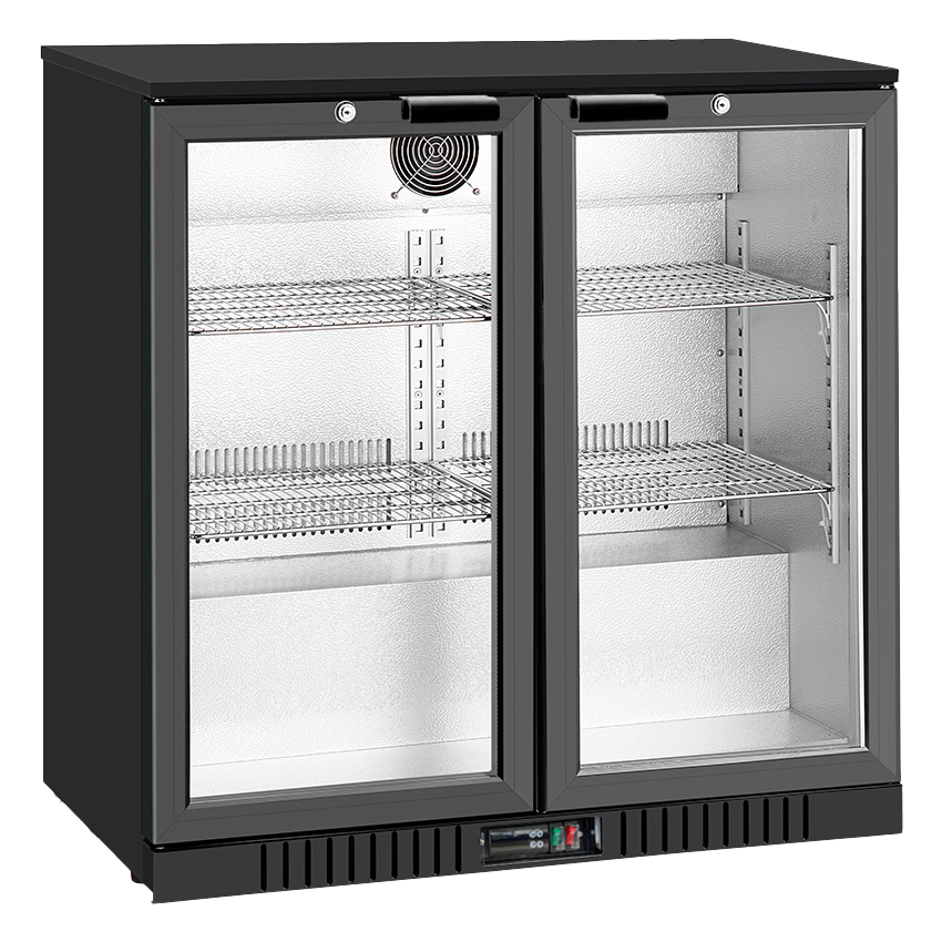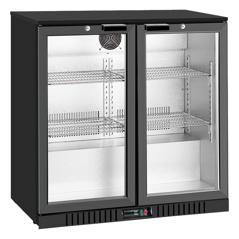 Double tempered, self-closing glass doors with keys