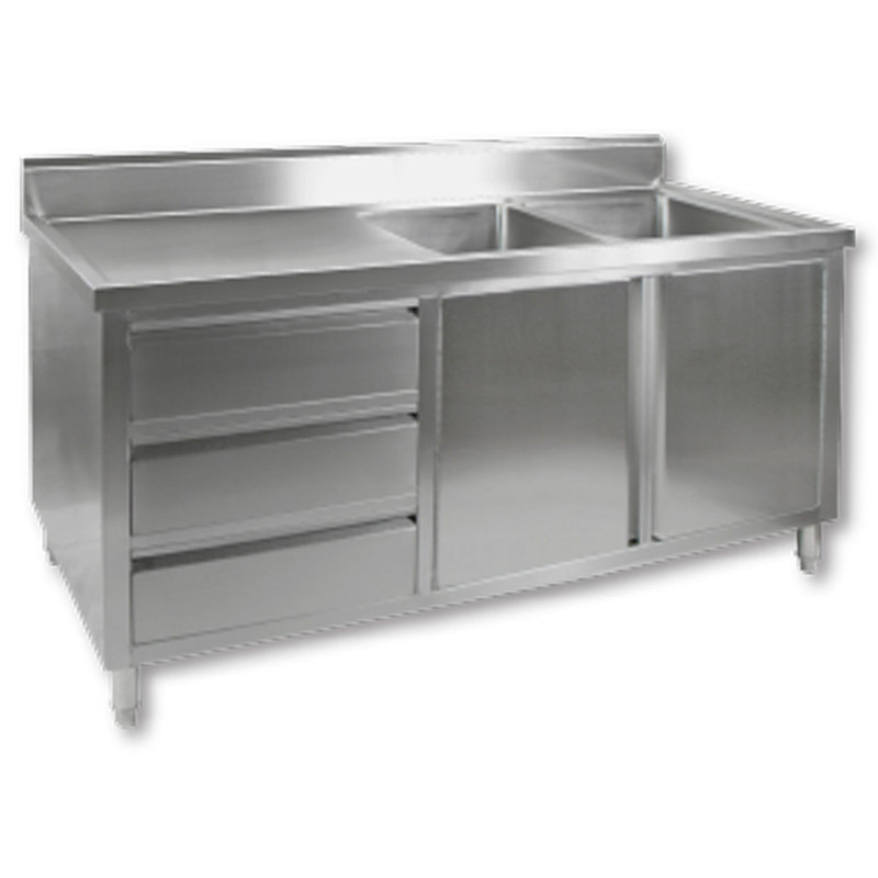 ALL STAINLESS STEEL KITCHEN TIDY CABINET WITH SINK, DOORS & DRAWERS