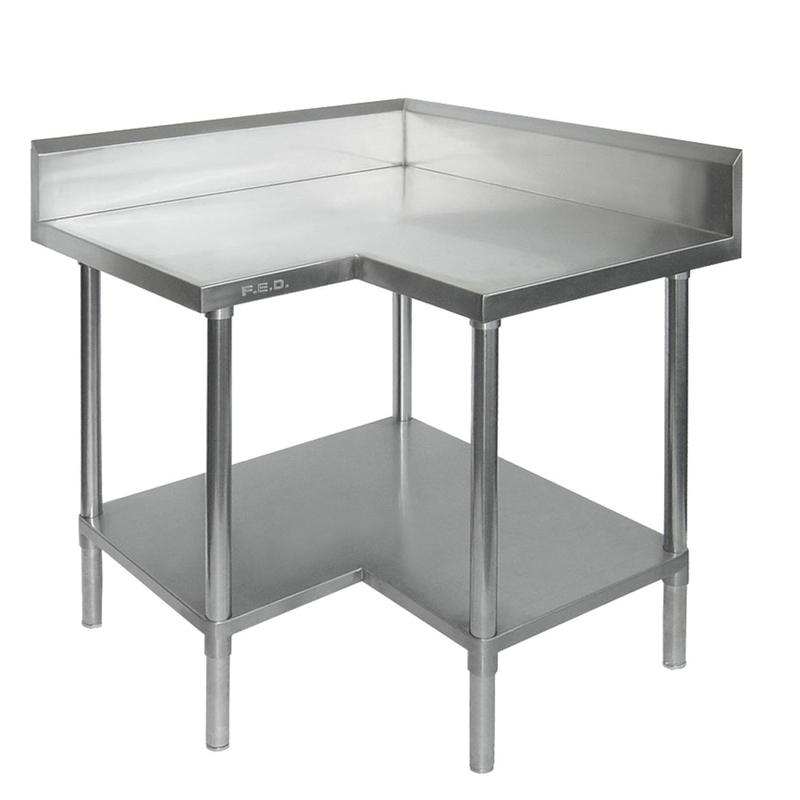 All Stainless Steel Corner Workbench with Splashback and Solid Undershelf - WBCB6-0900