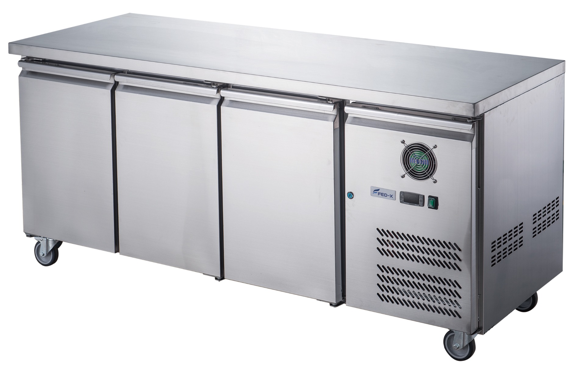 FED-X Stainless Steel Three Door Bench Freezer - XUB6F18S3V