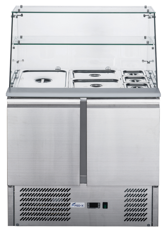 FED-X Two Door Salad Prep Fridge with Glass Top - XS900GC