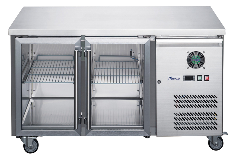 FED-X Two Glass Door Bench Fridge Stainless Steel - XUB6C13G2V
