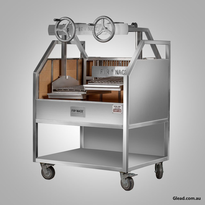 To cater to different kitchen setups and usage patterns, the FIReNACE lift-type charcoal oven offers a range of designs, including single-wheel, two-wheel, forward, and side-swing models. Its design allows it to be used as a stage for chefs to showcase their skills, making it a visual masterpiece in terms of composition, presence, and drama.