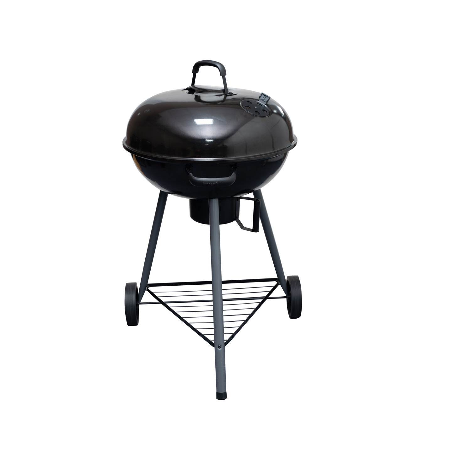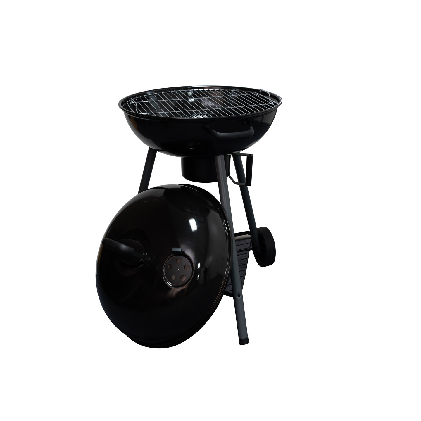*Enamelled steel hearth Φ57cm on trolley 3 legs with wire basket and enamelled cover.