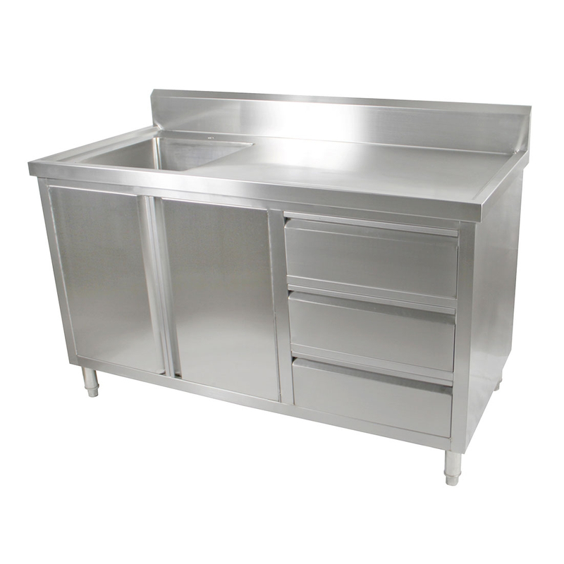 ALL STAINLESS STEEL KITCHEN TIDY CABINET WITH SINK, DOORS & DRAWERS