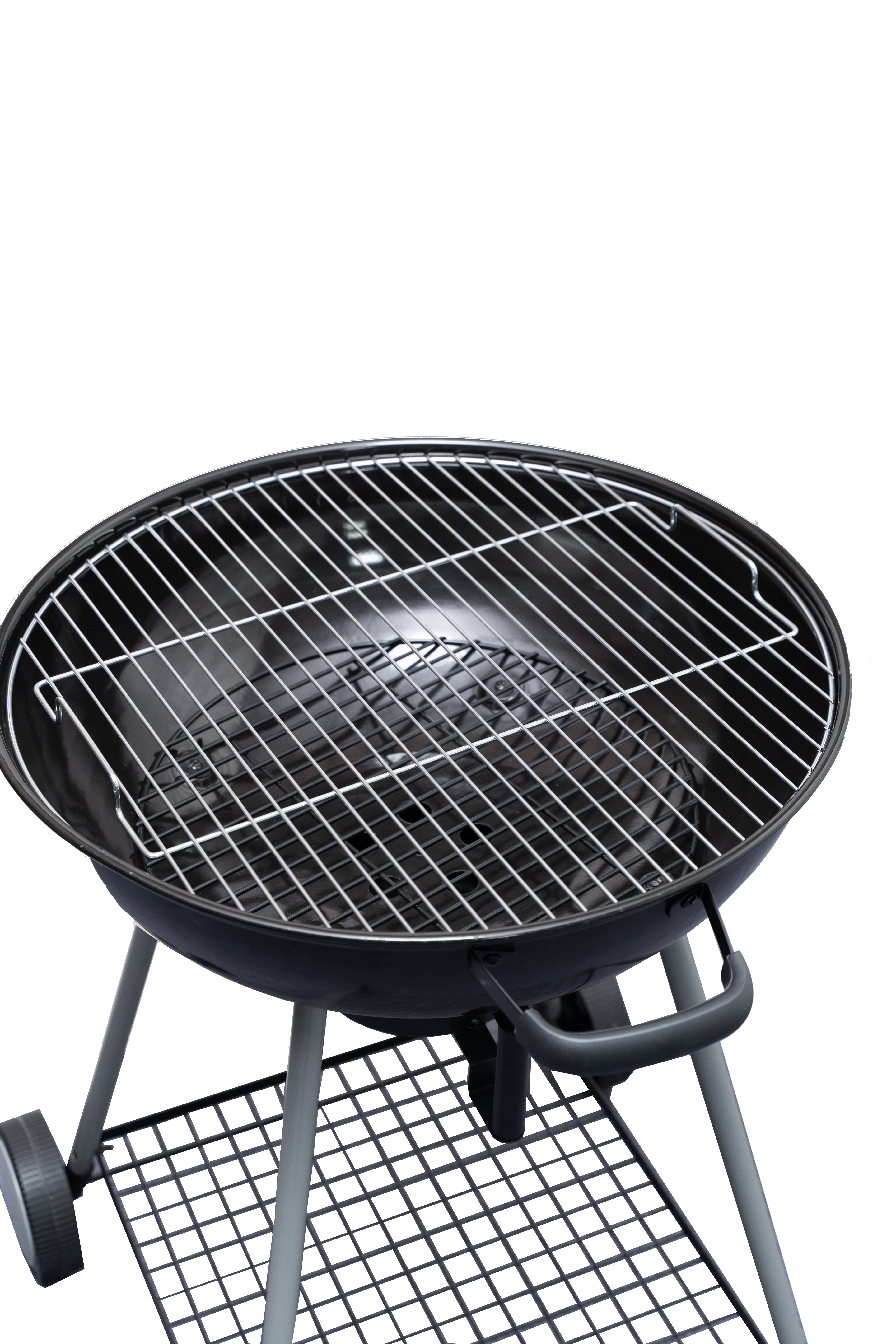 *Enamelled steel hearth Φ57cm on trolley with metal basket and enamelled cover.