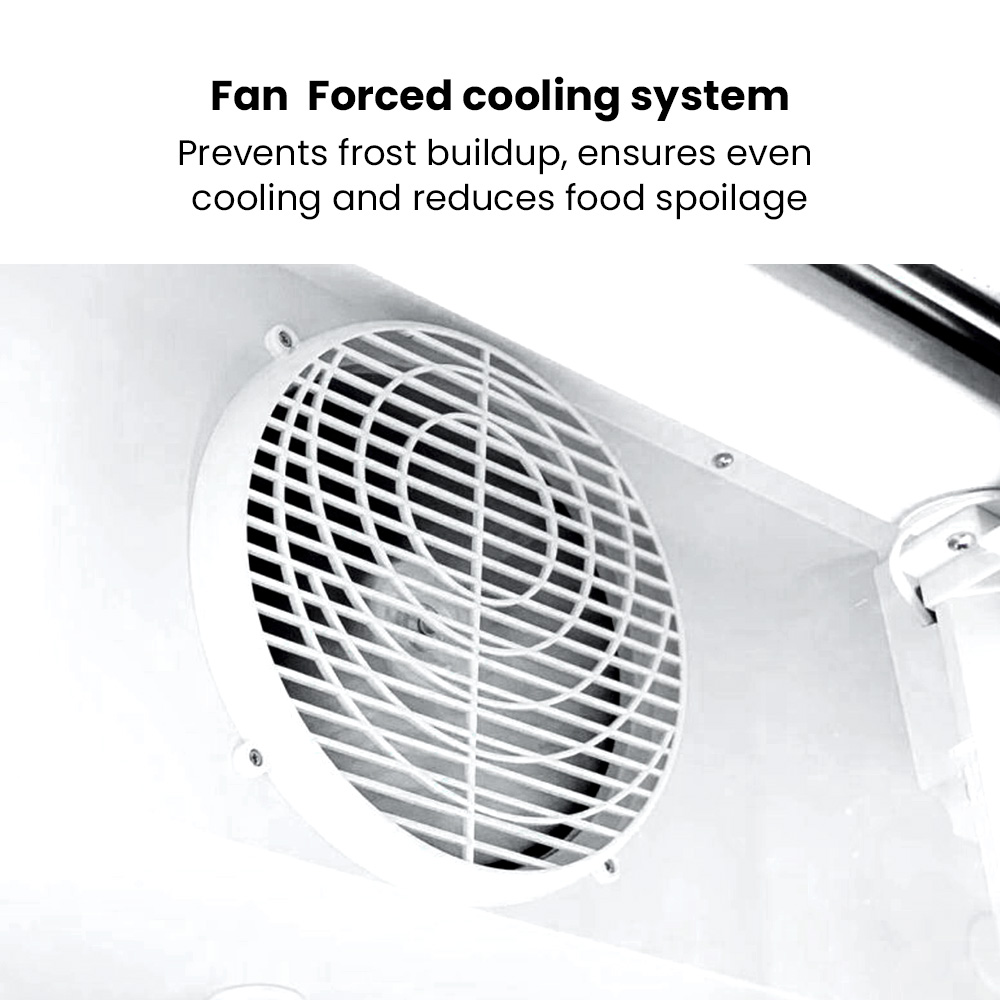 This powerful display fridge comes with a prominent decorative white color, with a large 1200-litre space for storage that aims to keep your ingredients cool and refreshed. It features five levels of strong shelving, interior LED lighting, powerful embrace compressors, digital temperature control, fan-forced evaporator cooling, self-evaporating drainage, and double-glazed doors for extra toughness and optimal viewing.